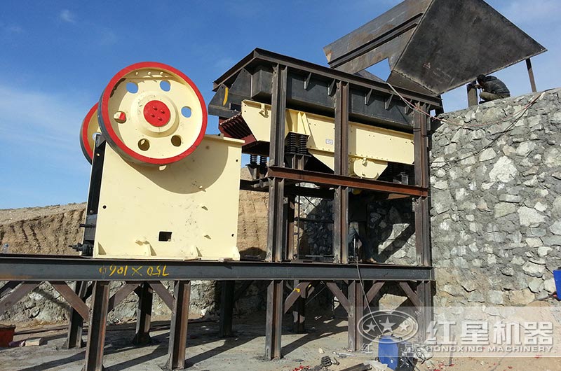 河卵石由給料機均勻地送進粗破機(顎式破碎機)中進行初步破碎,破碎后的物料運往下一階段;